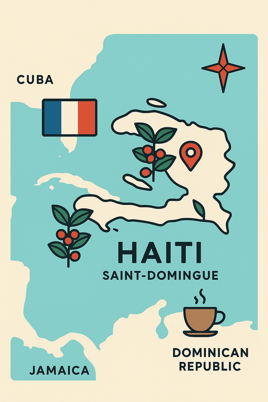 その後ヨーロッパを経由し、1723年にはフランスの植民地であったマルティニーク島へ移り、ハイチで生産されたコーヒー豆がヨーロッパの消費を支えた。1750年にはハイチは世界一の生産国に。