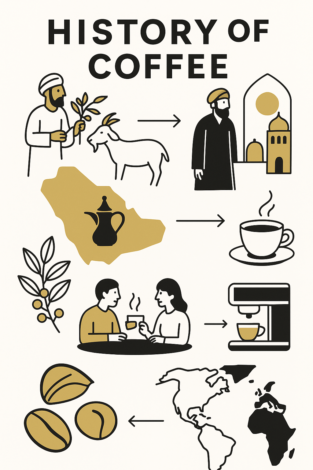 アラブではスーフィーと呼ばれる厳格なイスラム教信者が眠気を抑え祈りに集中するために”カフワ”と呼ばれる飲み物(今でいうコーヒー)を飲んでいた。
